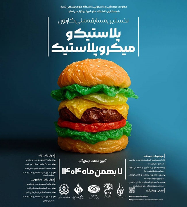 نخستین مسابقه ملی کارتون «خطر میکروپلاستیک‌ها» با همکاری دانشگاه علوم پزشکی شیراز و دانشگاه هنر شیراز برگزار می‌شود و دانشجویان سراسر کشور می‌توانند در این مسابقۀ ملی شرکت کنند.
