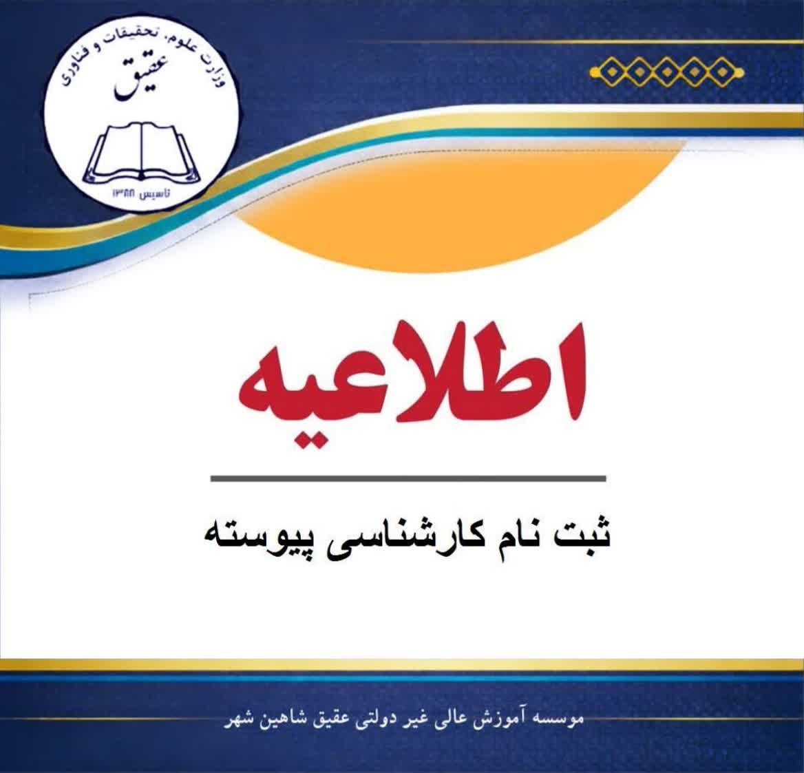 موسسه آموزش عالی عقیق با مجوز وزارت علوم، تحقیقات و فناوری در رشته های زیر و با ظرفیت محدود اقدام به برگزاری دوره های آموزش عالی آزاد با مدرک مصوب وزارت علوم نموده است.